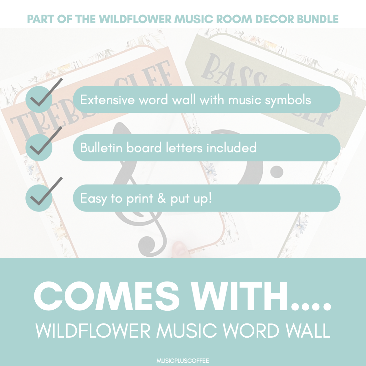 38 Wildflower Theme Posters: Bring a touch of nature into your music room with our beautifully designed wildflower-themed posters. Each poster features music signs and symbols, integrating a charming floral aesthetic with essential musical concepts. These posters are perfect for creating an inviting atmosphere while reinforcing musical notation and terminology.